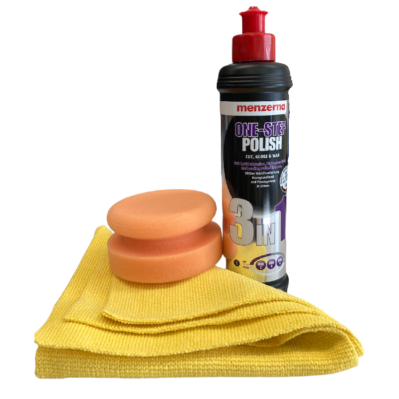 Mit nur einem Produkt Schleifspuren der Körnung 3000 auspolieren, Schlieren und Schatten zuverlässig entfernen und die Hochglanzoberfläche langandauernd schützen.